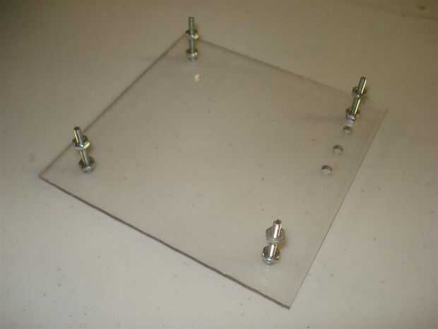 Antes de pegar la hoja de plástico sobre el PCB, usted necesita programar el Microcontrolador AVR en primer lugar, que está realmente en otro «paso Instructable". Cuando termine de eso, utilice 1" largo #4 tornillos y tuercas para sujetar el plástico protector a la PCB. (No tienen ningún separadores, usar separadores si quieres)