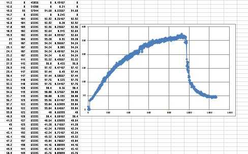 - Calcular la temperatura máxima que se alcanzó y calcular cuánto tiempo tomó para llegar a ella. Los valores raw sensor necesita ser multiplicado por 0.32 para convertir en grados Celcius.