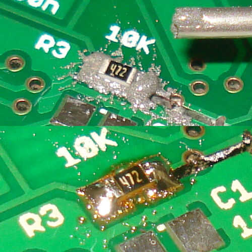Después de la optimización de optimización y rendimiento, debe ejecutar el ciclo de flujo de "modo automático" sólo para ver como luce la curva de temperatura. Lo hice con un PCB no deseado con una sola resistencia como una prueba. En las fotos, puede ver que no hacer el trabajo más limpio porque apliqué la pasta con la punta de la jeringa directamente sin necesidad de una plantilla. Pero la soldadura derrita y el componente se suelda perfectamente en su lugar.