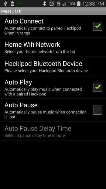 Una vez que han apareado con un HC-05, tienes la opción de seleccionar de la lista de dispositivos emparejados en la opción dispositivo de Bluetooth MuseHack.
