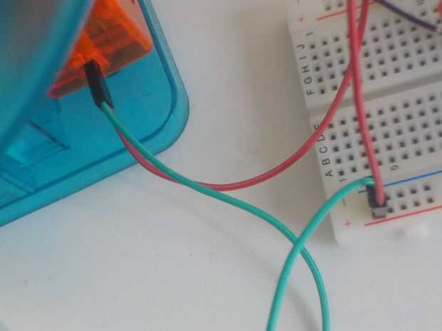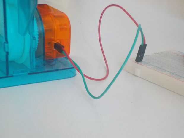 El motor del circuito tiene un conector para el panel solar. Retire el panel solar y añadir dos hembra a macho jumpers va desde el enchufe del motor (hembra) a un protoboard (hombre). Conecte uno de los puentes a + y otro - en la protoboard (polaridad del motor no se va no importa, bolas siempre arriba!!).