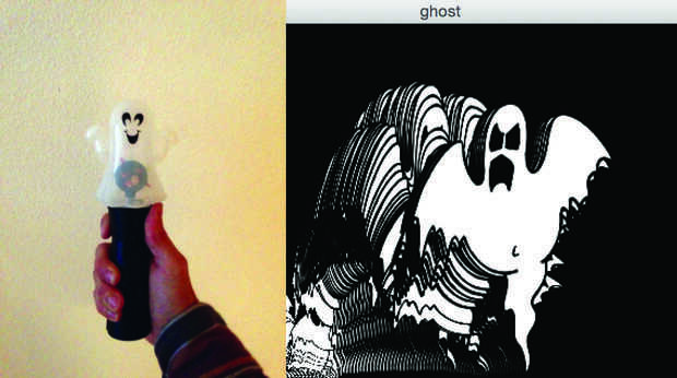 Hackear este juguete de fantasma para controlar su giro y dibujar un programa espeluznante.
