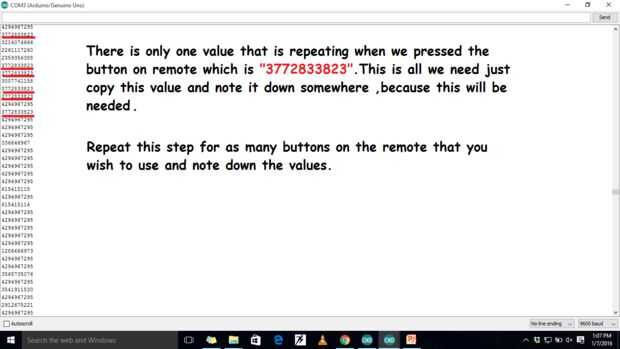El siguiente paso es identificar los valores que está asociado con el botón del control remoto.