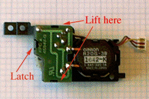 Usted tendrá que deshacer el cierre y Levante (con paciencia) la pequeña placa de circuito. Esto requiere un poco de cuidado como las cosas son bastante rígidas para comenzar, pero una vez pasado un cierto punto, el tablero de repente sólo viene gratis.