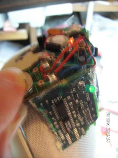 Agregar que el LED era difícil, como el pequeño rojo estaba tan cerca de la Junta. Primero tenía que determinar que conducen el ánodo y cual el cátodo. Un multímetro analógico que tenía práctica determinó que bastante rápidamente (después 20 segundos de la colaboración de mi esposa;-).
