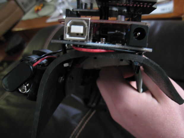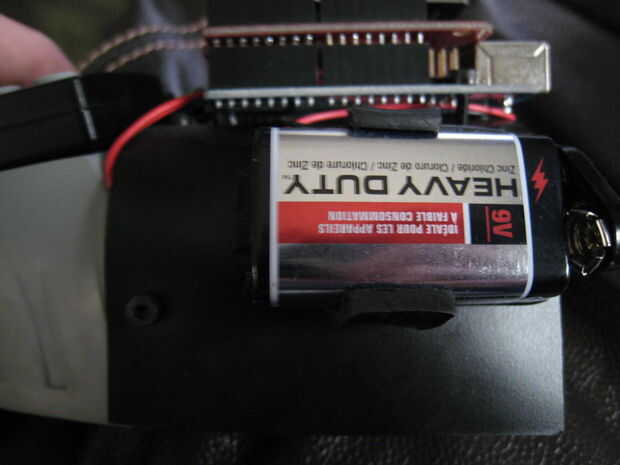 hice una extensión personalizada viene del guante para sostener el arduino. Lo hice con una hoja del ABS y una pistola de calor. Bastante calor para arriba y forman alrededor de su brazo para obtener la forma. Luego perfore los agujeros y coloque en el guante con algunas tuercas y pernos. También hice un soporte de la batería de 9v personalizado fuera de estas cosas también.