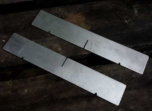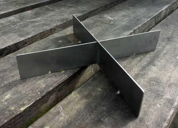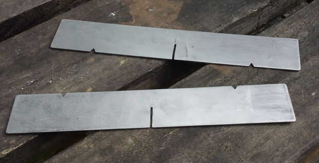 Necesita dos pares ranuras, 2mm de ancho y 25mm de profundidad, en cada pieza de metal, para que cuando ranurado juntos forman una cruz. Esto puede hacerse de muchas maneras diferentes, tuve que usar la solución bastante sencilla de una Sierra para metales (mi favorito de sierra ;-)) y algunos archivos de la aguja, para conseguir una ranura que estaba aseado y exactamente de 2 mm de ancho.