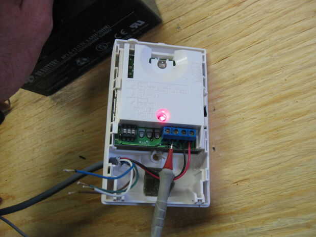 Mi sensor utiliza una fuente de 12 V DC para la operación. Los bornes del aparato deben mostrar el voltaje adecuado y la conexión. Usé este requisito de poder seleccionar un relé que se activa también con 12 V de CC.