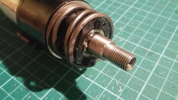 El embrague está conectado con dos tornillos. Su resorte así que ten cuidado de quitarlo. También, quitar el embrague exponer los cojinetes de bolas interior, mantenga el motor en posición vertical para que no caiga hacia fuera.