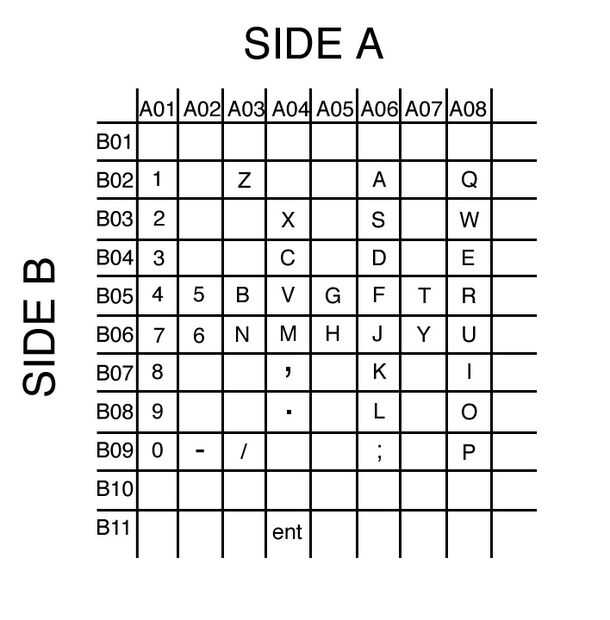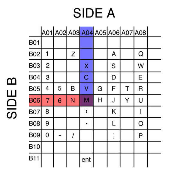 Por ejemplo, si conecta "Pin 4" en el lado A y "Pin 6" en el lado B producirá la letra "M" en el equipo (ver imagen).