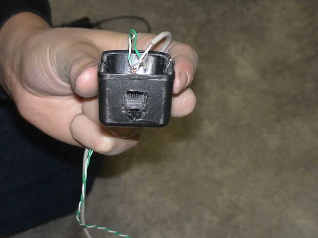Para hacer un caso para el convertidor, simplemente tome el enchufe la base del teléfono alámbrico y abre como se muestra en la imagen de abajo. Puede que necesite utilizar un destornillador para quitarlo aparte. A continuación, quitar todos suelta componentes y ajustarán o cortan los alambres conectados a la pared plug-in. soldadura de los terminales del enchufe de la caja y quitar. Cortar, quemar, taladro o moler un agujero en el lado de la caja para que el jack de teléfono plug-in se puede pegar detrás del orificio para permitir que el cable de teléfono para conectarse desde el exterior de la caja. A continuación, ejecute los cables que van hasta el micrófono y sonido jack plug-ins a través de los agujeros de clavijas de enchufe. Puede que necesite a otro corte, quemadura, taladro o rutina para agrandar los agujeros para los cables.