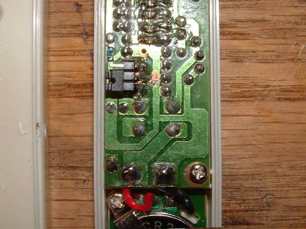 3. Perfore un pequeño agujero en el lado de la caja del botón o la vivienda. Para hacerlo más fácil en mí mismo, quité el plástico restante del área del orificio y lo hizo en una muesca. Enrosque el cable desde el interruptor de alarma magnético a través de este orificio (si lo dejaste como un agujero) y el momentáneo interruptor táctil. Corte el cable y tira por lo que puede ser soldado a los polos del interruptor momentáneo. Retire la placa de circuito de la caja y ubicar los terminales del interruptor momentáneo en el lado de la soldadura de la Junta. Algunos interruptores táctiles, como los que se muestran, tienen cuatro postes. Hay sólo dos que se pueden utilizar como los polos están conectados entre sí. a cada lado. Hice este otro para una ventana doble, usé un interruptor magnético en cada lado. Cada ventana se activará la alarma.