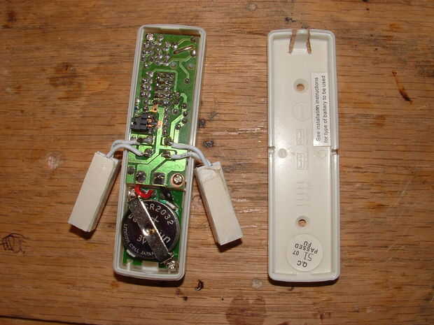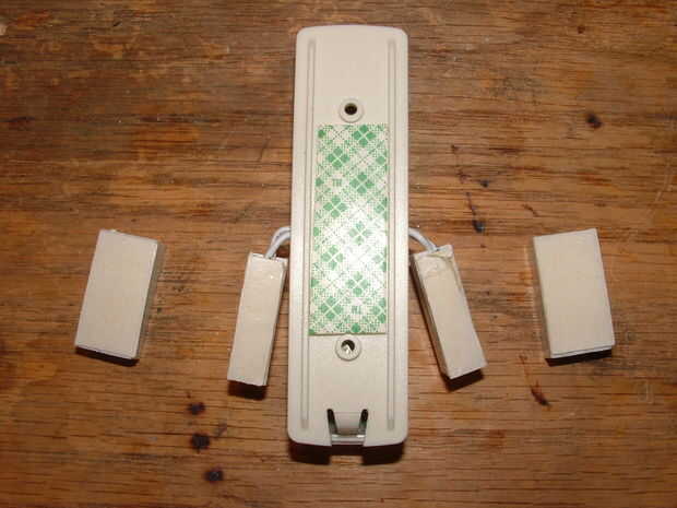 6. Vuelva a montar el interruptor de timbre de la puerta y aplique cinta de doble cara a la parte trasera y la parte posterior del interruptor magnético que está conectado a él. Se pegan los switchs en el marco de la ventana que se desea proteger. Utilice cinta de doble cara y pegue la parte magnética del interruptor magnético para el marco de la ventana con la parte inferior del mismo nivel con la parte superior de la porción del cable del interruptor magnético. Esto permitirá que el interruptor de cierre y la alarma para activar como se levanta la ventana. Sólo se cerrará momentáneamente como las diapositivas de la parte magnética más allá de la porción del cable del interruptor magnético. Eso es todo lo que necesitas para activar la alarma y no se utiliza casi batería ya que el interruptor está cerrado sólo por el breve momento que el imán se desliza más allá. Esto también le permite abrir sus ventanas sin el contacto de drenar la batería cuando el sistema de alarma está apagada.