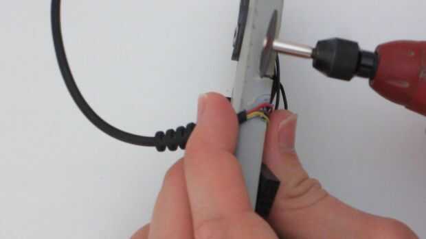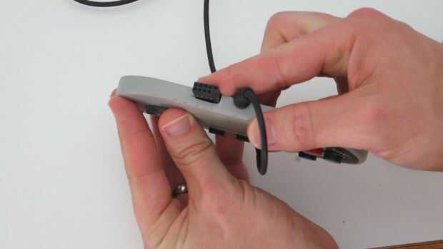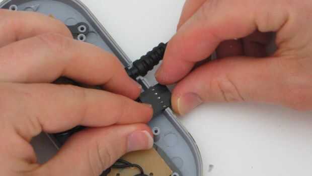 Con un cuchillo o herramienta Dremel, corte una ranura en la carcasa que es apenas lo suficientemente grande como para los conectores en el extremo del cable. Luego aplicar pegamento en tres lados del conector. Coloque el conector en la ranura que simplemente cortar y sujete en su lugar hasta que el pegamento se seca. Una vez que el adhesivo ha curado completamente, cerrar la caja. Asegúrese de que los conectores y los cables están conectados a qué botones.