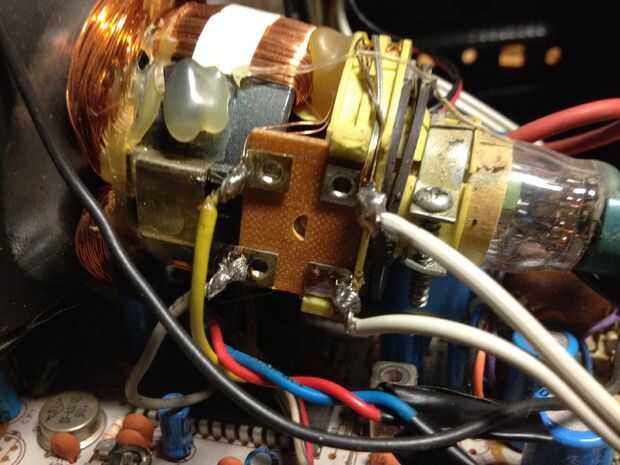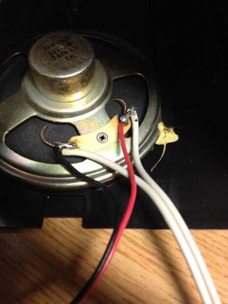 Lo único que dejó hacer es conectar el altavoz de la TV a la bobina de deflexión horizontal. La soldadura de dos alambres en su lugar y cierre todo. La conversión es completa!