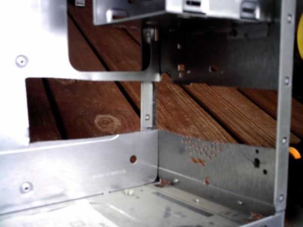 Entonces había montado en la placa frontal a la torre, caído en la manga y trazado el corte que tenía en la cara de la torre. El lado de en que la placa se monta encontraba en el camino el estéreo era corte áspero para hacer espacio.