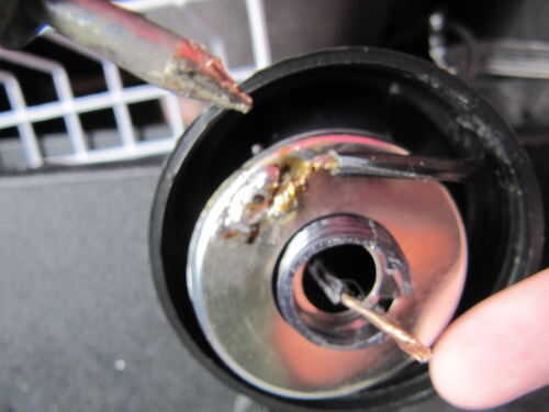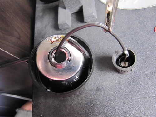Otro cable por la parte delantera de la cabeza de la linterna del hilo de rosca y soldadura a donde era la bombilla. Se trata de tu positivo.