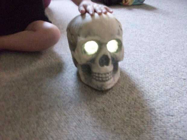 Hackear una luz Solar de la yarda en una escalofriante cráneo patio luz por alrededor de $10