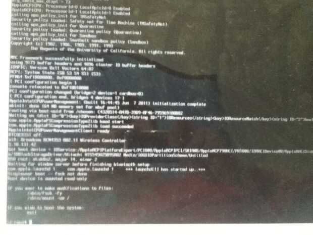 Mantenga presionado comando y s en el arranque (comando es la tecla manzana) (hacer esto antes de que la manzana aparezca en la pantalla).