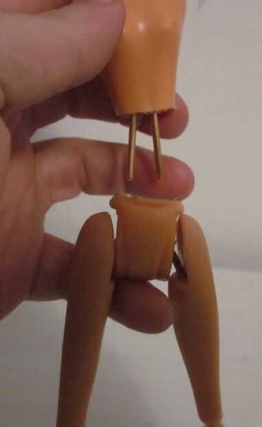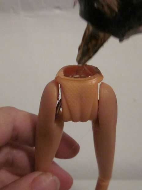 Rellenar la cavidad de la cadera con el pegamento caliente del derretimiento. Pase los cables del torso en la cavidad de la cadera. Dejar reposar hasta que seque el pegamento. Compruebe y quite el goteo cuando el pegamento esté lo suficientemente frío como para tocar.