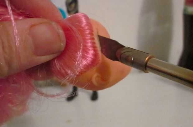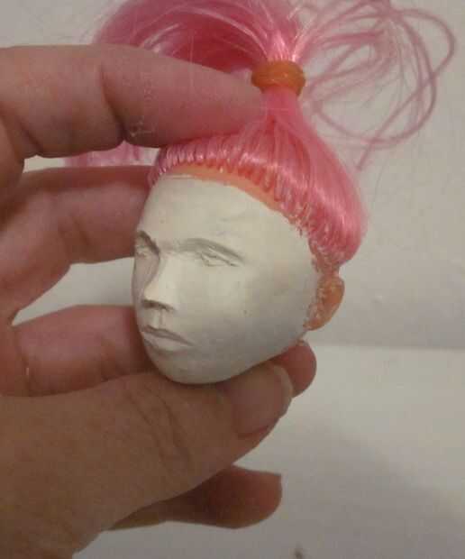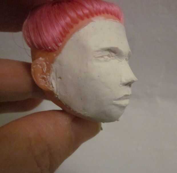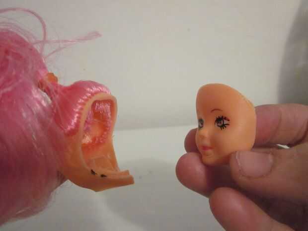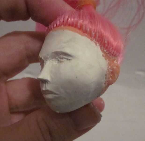Usando un cuchillo caliente, quite la cara de la cabeza de la muñeca como se muestra.