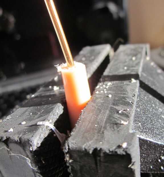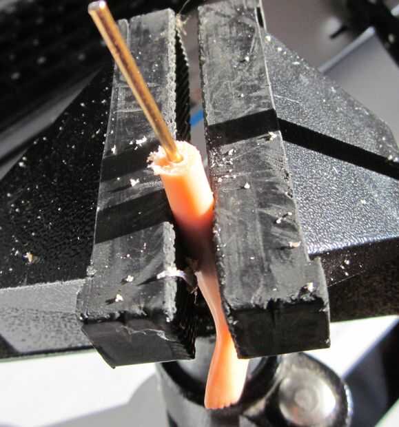Recorte el exceso de cable lejos, pero deja al menos 3/4" que se extiende fuera del agujero.
