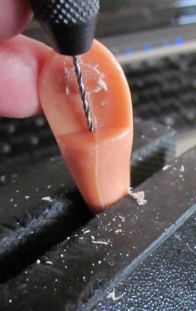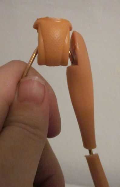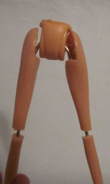 Aplicar pegamento en los extremos de los cables que se extiende desde las caderas e Inserte la pata superior. Permiten establecer 15 segundos.