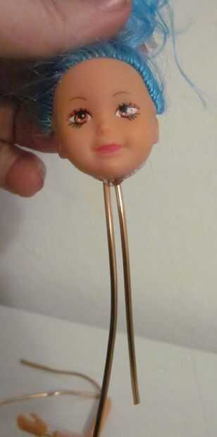 Inserte las dos longitudes de alambre de floristería en la cabeza como sea posible.