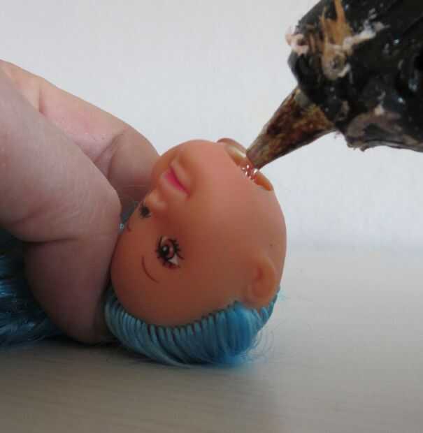 Invertir la cabeza y llenarlo con pegamento caliente del derretimiento.
