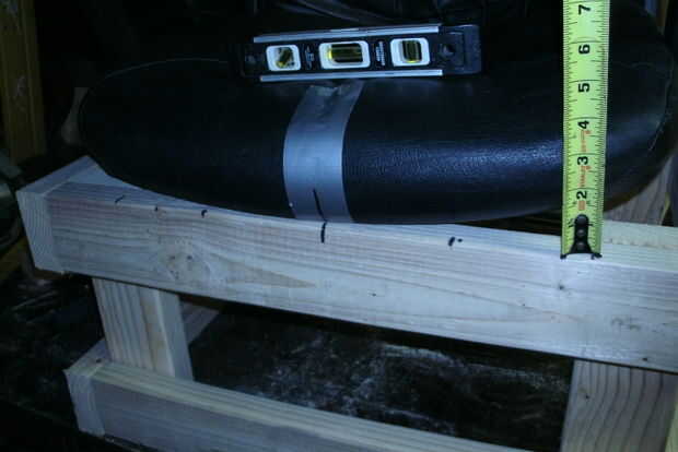 Esta fue la parte más difícil y requiere un poco de matemáticas/finesse. En primer lugar, me centré la silla en el centro de la carcasa de la caja. A continuación, añadí un soporte entre la silla y el marco hasta que la silla era nivel. Sin esta cuña de la silla inclinarse o rodar hacia un lado porque su curvatura en su parte inferior. Una vez que se nivel medí la distancia entre el punto donde el Presidente descansaría finalmente en el marco de la estructura sí mismo. Esta distancia es la misma distancia que del centro de la silla tendría que caer en el marco. Imagen 1 representa esta tarea. Imagen 2 muestra el esquema que genera se basa en la medición anterior. He seguido el mismo proceso para la parte trasera. La parte trasera requiere menos profundidad ya que su curvatura era mucho menos. Utilicé una sierra de calar para eliminar la porción contorneada. Por último, lija la porción curvada del marco hasta la silla encajen cómodamente dentro del marco (imagen 5).