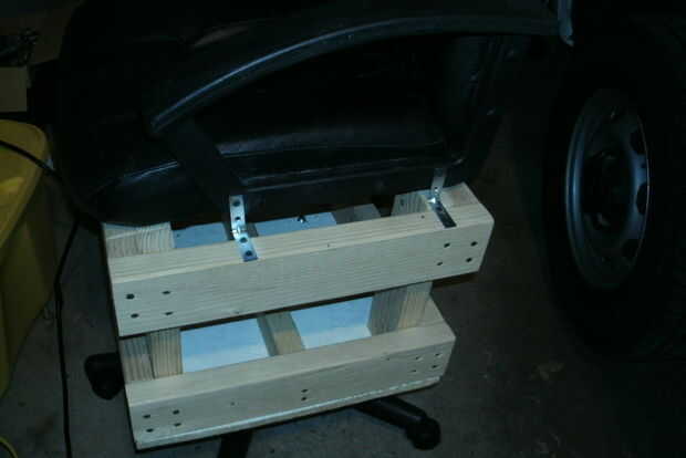 tenía un viejo asiento de carreras que necesitan un nuevo propósito además de ocupar espacio en la cima de mi GTO aherrumbrar. Y no tengo una silla móvil en mi garaje, solo un par de sillas plegables de metal. Así que parecía una buena idea para el a