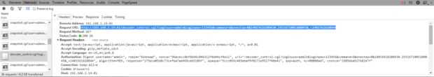 Guardado la página en el disco y vieron monitor.htm. Fue allí que encontramos algunas variables de aspecto interesantes, como PTZ_UP y PTZ_STOP, que parecen ser constantes de control de movimiento. Teniendo en cuenta, abrimos la consola de control web (Ctrl + Shift + C en Chrome) e inspeccionar el tráfico de red mientras hace clic en los botones de movimiento de cámara. Encontramos varias llamadas a un decoder_control.cgi página con un "comando =" argumento que empareja las constantes que encontramos en la HTML - uno cada vez que un clic comienza y otra cada vez que termina un clic. ¿Los controles son ON/OFF y a través de petición HTTP GET? Vamos a averiguar!