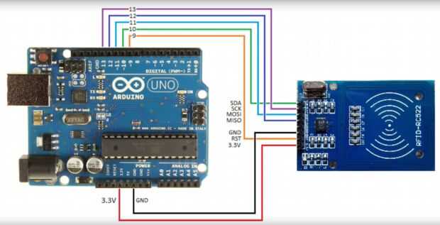 Después de cableado para el módulo RFID como se muestra, el programa de ejemplo muestra cómo leer las etiquetas de RF y usarlos en una sencilla aplicación "control de acceso". El programa requiere la biblioteca Arduino para Mifare RC522 dispositivos que se pueden descargar como se muestra en este video. Asegúrese de abrir al monitor serial en el IDE de Arduino porque el programa será comunicarnos con usted sobre la interfaz de serie. Cuando se ejecuta el programa, la primera etiqueta que se analiza se convierte en la etiqueta de la llave. Después de eso, otras etiquetas escaneadas "fallará" a abrir la cerradura, mientras que la etiqueta de clave registrada tendrá éxito en la apertura de la cerradura. Es un ejemplo simple, pero muy instructivo.