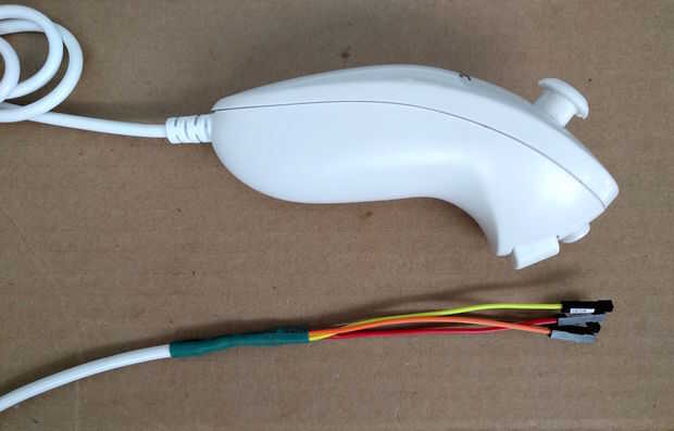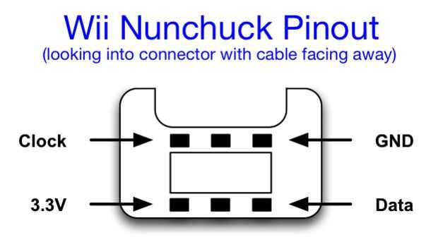 El controlador de Wii Nunchuck (WiiChuck) incluye un acelerómetro de 3 ejes interconectada sobre un simple bus serie I2C, un Joystick y dos botones.