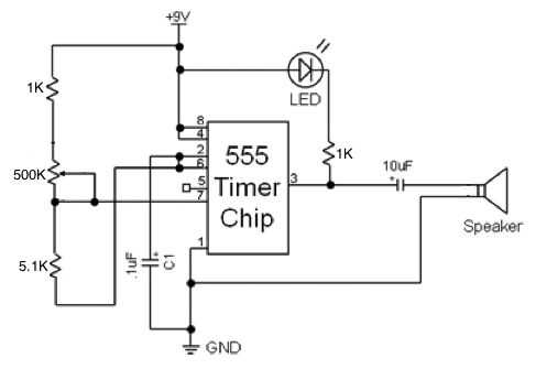 Esta demostración ilustra el conducir un altavoz con un chip 555 en modo oscilador.