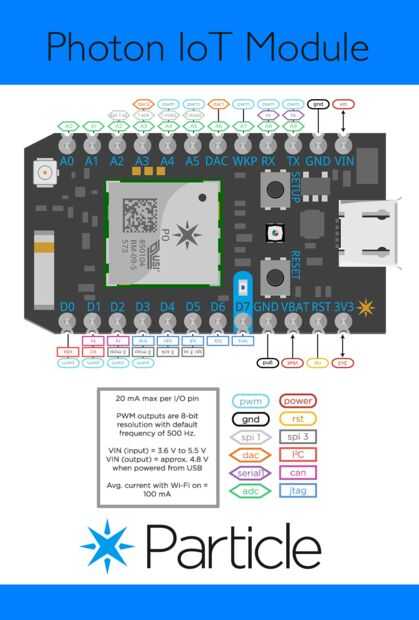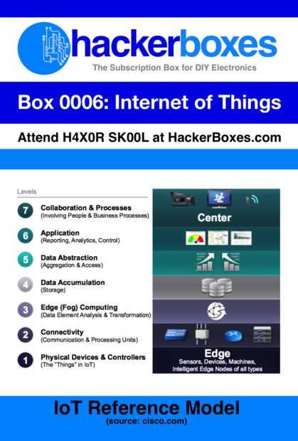 HackerBoxes coleccionables del mes de referencia tarjeta de características del modelo de referencia de IoT publicados en un documento de Cisco junto con la información de referencia para el tablero de partícula fotón IoT. El fotón partícula era conocido originalmente como el núcleo de la chispa y fue financiado a través de una campaña de Kickstarter. Echale un vistazo al video.