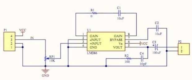 Si usted desea conducir una señal de audio analógica de nivel de línea (por ejemplo, de un DAC) en un altavoz o auriculares, puede ser necesario para amplificar la señal un poco. Circuito integrado LM386 un amplificador de energía audio muy común de baja tensión. Es útil para radios, amplificadores de guitarra y varios proyectos de electrónica de la manía. Los terminales de tornillo del módulo pueden conectarse directamente a un altavoz.
