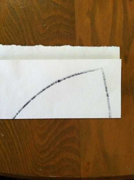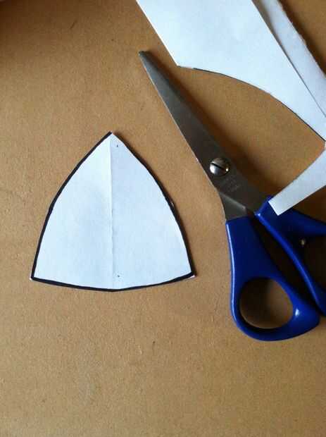 si se mide desde cada borde del triángulo, deben todos ser el mismo. ahora es el momento para ajustar si es necesario. He utilizado un rotulador asi que mostraría a través del papel. Doblé por la mitad, utilizando la mejor curva como guía. entonces yo cortar el patrón.