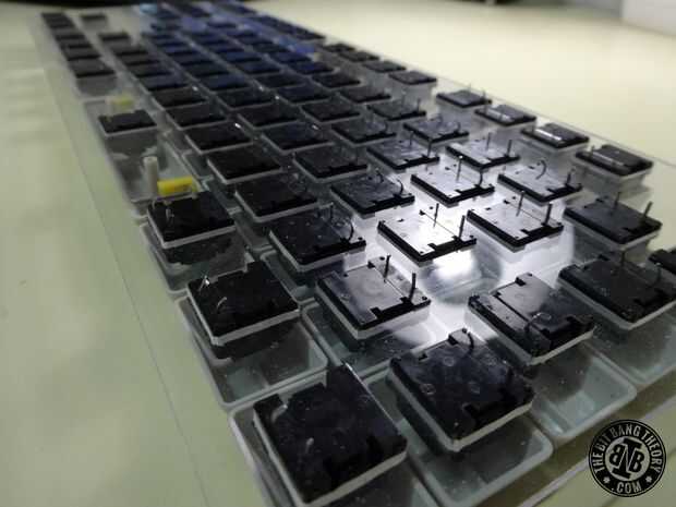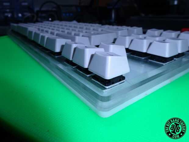En este punto, he probado todas las piezas que tenía listo hasta ahora para ver si todo estaba encajando según lo previsto y sin errores se hicieron. He insertado todos los interruptores y las teclas en sus lugares y apiladas las cuatro capas de acrílico para comprobar los errores. También tuve una primera visión de cómo sería la apariencia y estaba bastante emocionado con el resultado hasta ahora :) Todo estaba perfectamente bien alineado y buscando :)