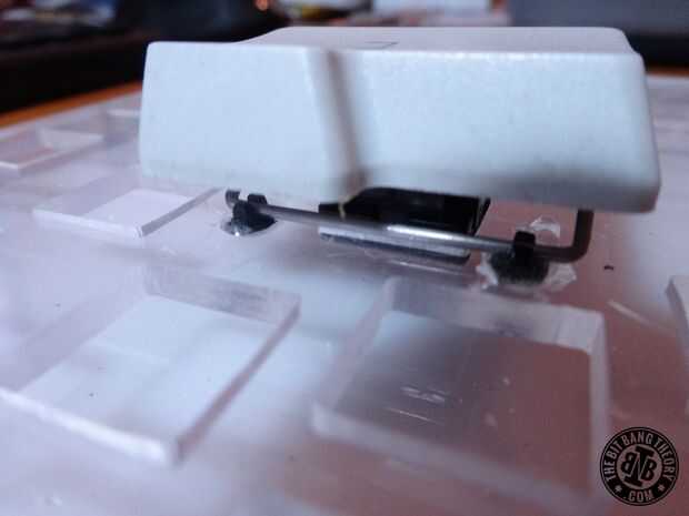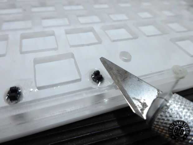 Una vez seco el pegamento, he quitado los interruptores y utiliza un cuchillo y unos pequeños archivos para quitar el exceso de pegamento.