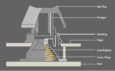 Teclado más que encontrará en las tiendas hoy en día (básicamente todos ellos salvo los productos Gamers High-End) utiliza una membrana de silicona con una cúpula de silicio debajo de cada interruptor, teniendo cada domo un pequeño contacto que activará la tecla una vez que presione la tecla. Después de algún tiempo de uso tiene perdido el contacto y a veces tienes que bajar la llave más difícil hacer una pulsación de tecla.