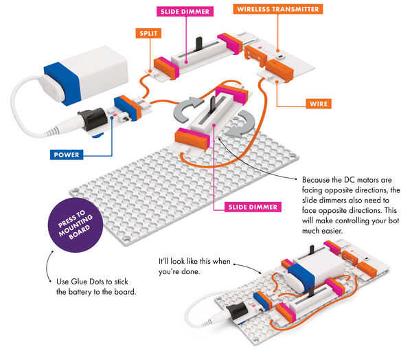En primer lugar construir su circuito de transmisor inalámbrico, luego presione en placa de montaje. Esto funcionará como su mando a distancia, enviando su señal al BitBot.