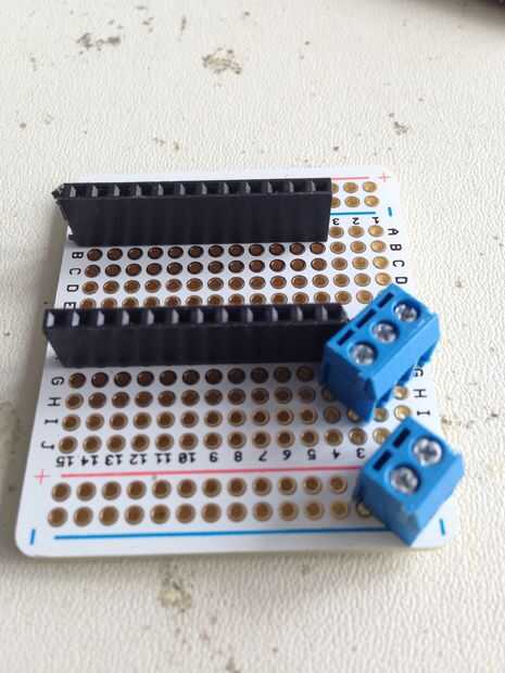 - Ajuste el Pin 3 y 2 terminal de tornillo de perno diagonalmente para encajar en el tablero de perf.