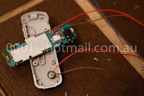 Luego de la soldadura de cables nuevos Recordando la polaridad. Hacer lo mismo con la pieza de micrófono.