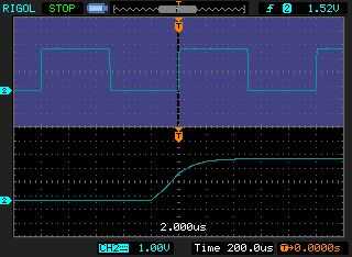 a continuación puede ver mi forma de onda de prueba de las terminales de compensación de la sonda.  Yo también he activado modo retrasa la exploración obtener formas de onda ampliadas y completas en la pantalla.  Es un efecto fresco.