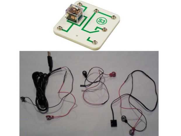 En la parte superior de la imagen verás el Relais circuitos de presión. En la parte inferior de la imagen verás tres Snap circuitos cables de la conversión que he hecho. El cable de la izquierda es un cable USB a ajustar los circuitos que yo puedo encender motores y otros dispositivos a 5 volts. El cable del centro es un pin de cabecera para ajustar circuitos cable que puedo conectar un bloque de circuitos de presión directamente a los pines de la Rúbrica GPIO en placa de circuito de Trakr. El cable a la derecha es un circuitos de Snap para cable de Lego así puedo conectar un bloque de circuitos Snap a un motor de Lego. Eran fáciles de hacer.