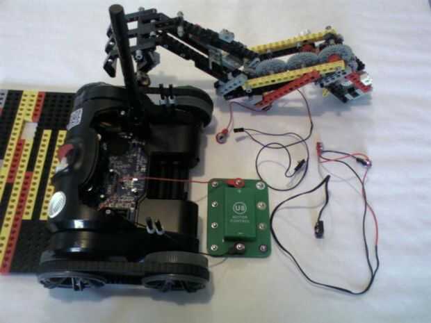 2. Conecte el Snap circuitos puente cable negro media que es de alambre pegados/soldados en suelo de Trakr (negativo) de la soldadura de punto en el circuito de Trakr pensión a-broche de presión (presión negativa) en el Snap circuitos Control IC del Motor.
