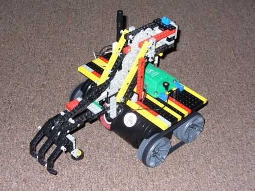 Aquí está un video del Trakr con el brazo del grabber de Lego: