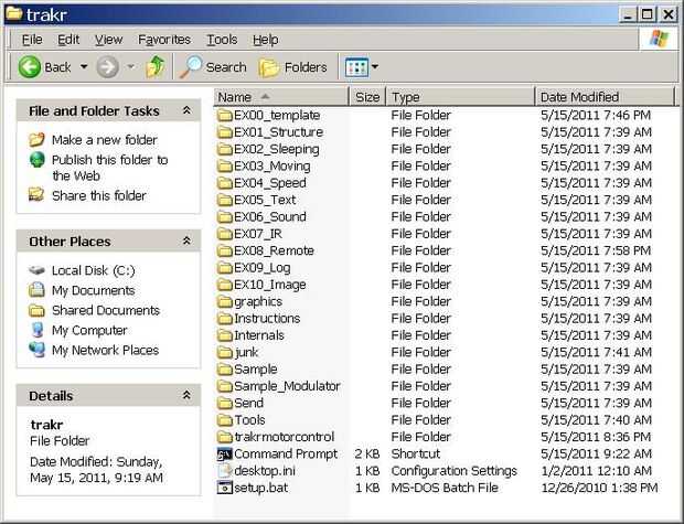 Hacer una nueva carpeta en el directorio raíz del disco duro (normalmente la unidad C:) llamada C:\trakr. Luego abra el archivo zip de Trakr cartilla que descargó desde el sitio web de Trakr y copiar todos los archivos y carpetas desde el archivo zip de Trakr cartilla en la carpeta C:\trakr.