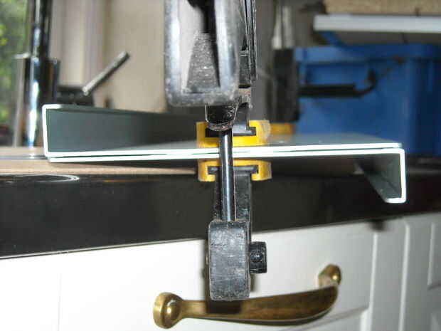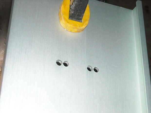 La parte delantera de aluminio puede dar la vuelta, pero los agujeros para el montaje en el cajón se coloca mal entonces. Tomar otro frente y darle la vuelta en 180 grados. Sosténgalos juntos y usarlos como plantilla para taladrar los orificios nuevos 4.
